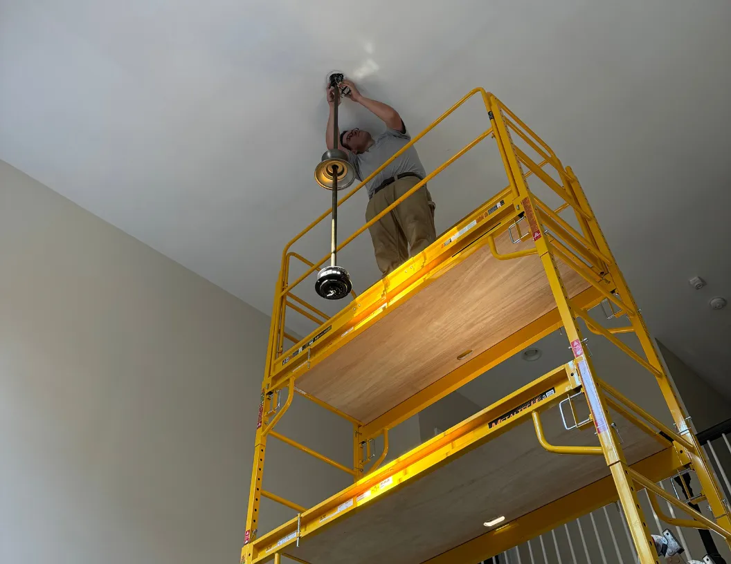 We handle a wide range of residential electrical installations, including lighting fixtures, ceiling fans, outlets and receptacles, dedicated appliance circuits, electrical panels, EV chargers, surge protection, and smart home devices.